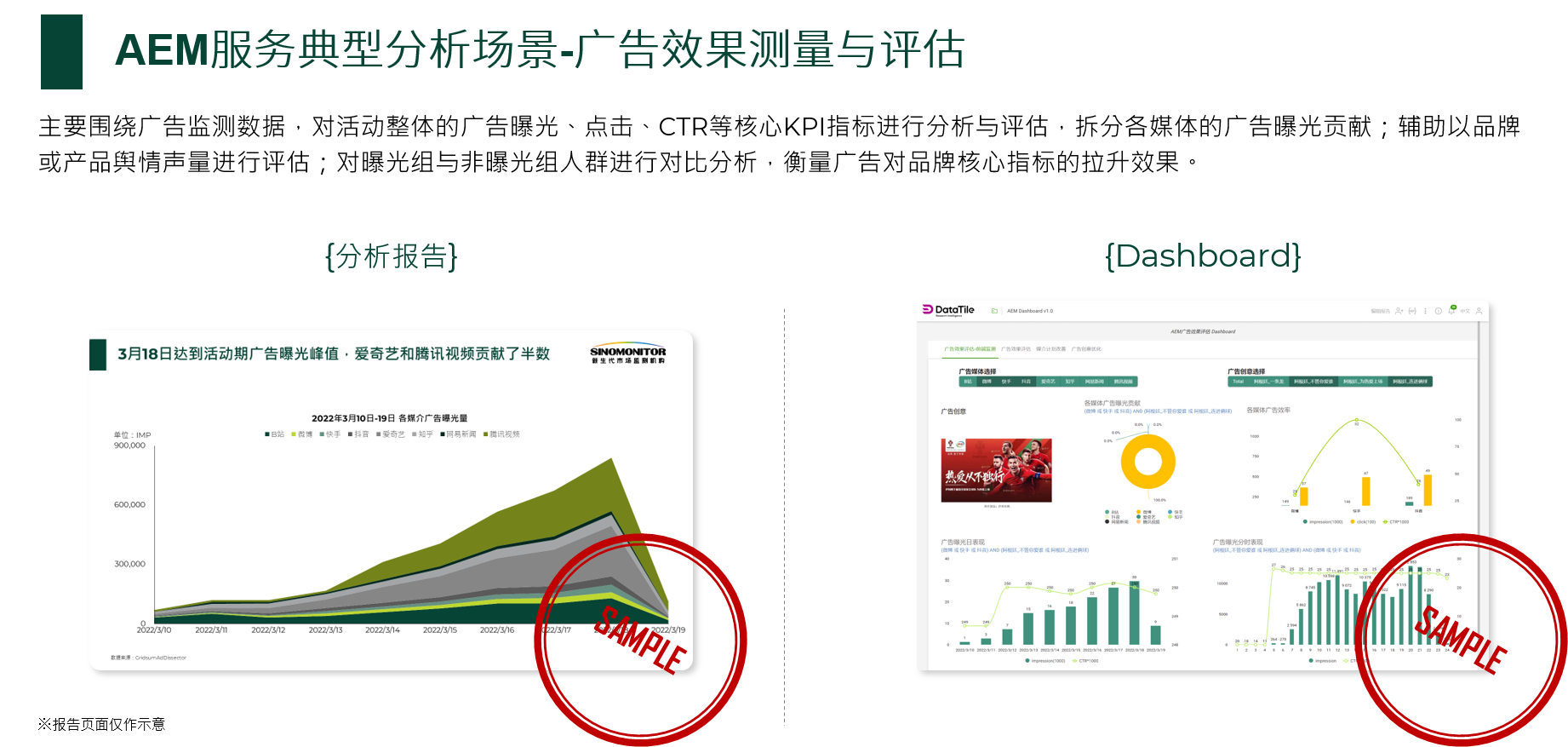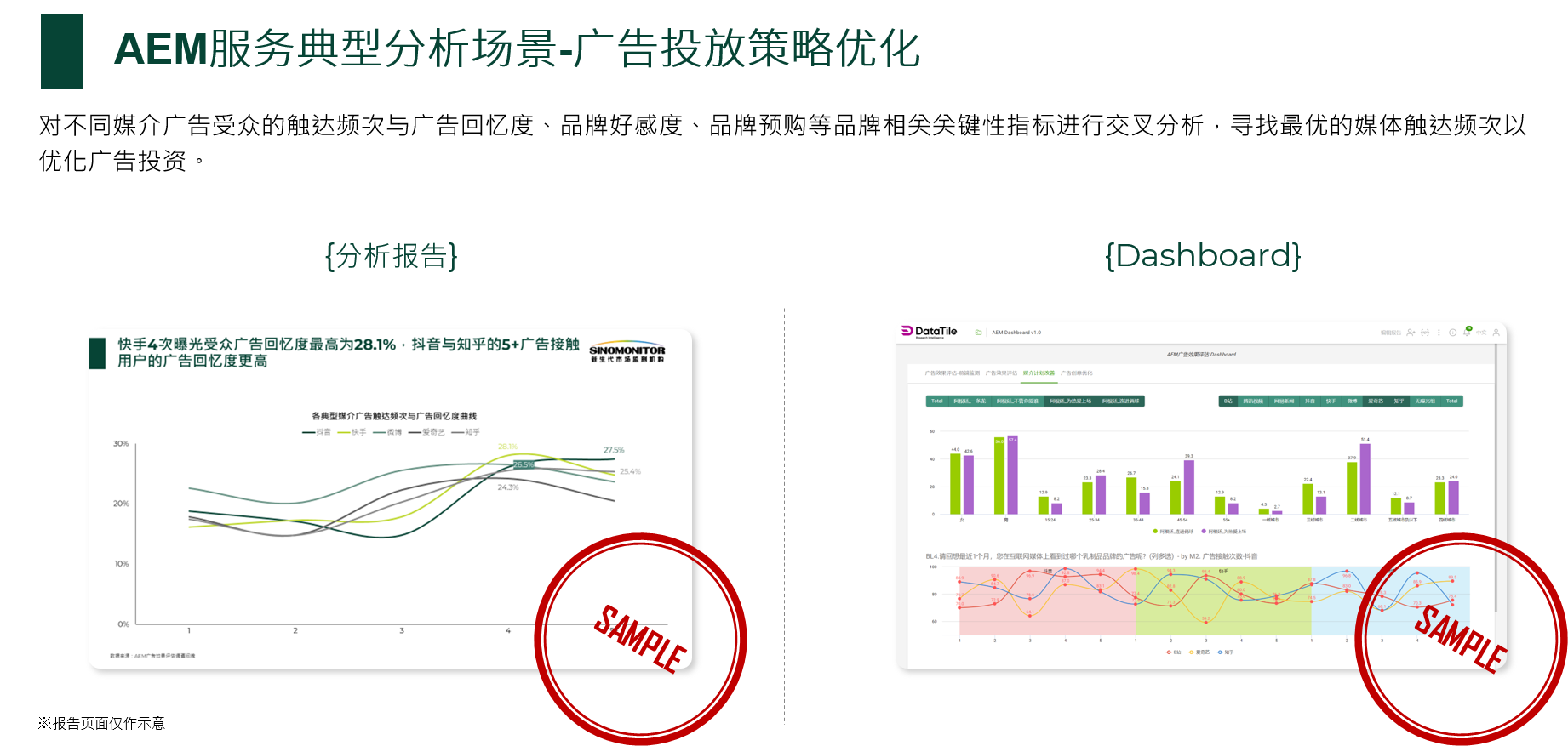 AEM通过监测数据反映广告曝光、点击、转化,通过调研数据反映广告对消费者心智的影响,二维同源数据共同勾勒消费者广告接触行为及广告对消费者心智的影响。